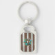 Steampunk Clock and Turquoise Roses on Striped Key Ring