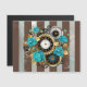 Steampunk Clock and Turquoise Roses on Striped Magnetic Invitation