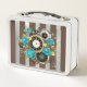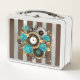 Steampunk Clock and Turquoise Roses on Striped Metal Lunch Box