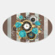 Steampunk Clock and Turquoise Roses on Striped Oval Sticker
