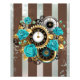 Steampunk Clock and Turquoise Roses on Striped Photo Print
