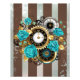 Steampunk Clock and Turquoise Roses on Striped Photo Print