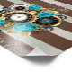 Steampunk Clock and Turquoise Roses on Striped Photo Print