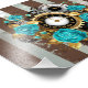 Steampunk Clock and Turquoise Roses on Striped Photo Print