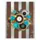 Steampunk Clock and Turquoise Roses on Striped Photo Print