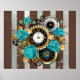 Steampunk Clock and Turquoise Roses on Striped Poster