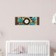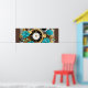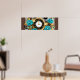 Steampunk Clock and Turquoise Roses on Striped Poster