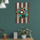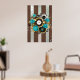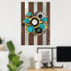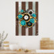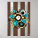 Steampunk Clock and Turquoise Roses on Striped Poster