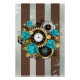 Steampunk Clock and Turquoise Roses on Striped Poster