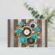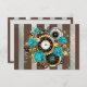 Steampunk Clock and Turquoise Roses on Striped RSVP Card
