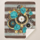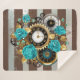 Steampunk Clock and Turquoise Roses on Striped Sherpa Blanket