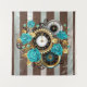 Steampunk Clock and Turquoise Roses on Striped Tapestry