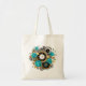 Steampunk Clock and Turquoise Roses on Striped Tote Bag