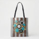 Steampunk Clock and Turquoise Roses on Striped Tote Bag