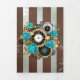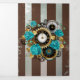 Steampunk Clock and Turquoise Roses on Striped Tri-Fold Card