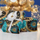 Steampunk Clock and Turquoise Roses on Striped Wrapping Paper