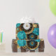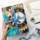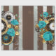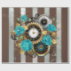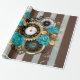 Steampunk Clock and Turquoise Roses on Striped Wrapping Paper