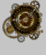 Antique, fantastic watches with gold and brass gears on a brown, rusty background. Steampunk style.