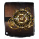 Antique, fantastic watches with gold and brass gears on a brown, rusty background. Steampunk style.