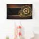 Antique, fantastic watches with gold and brass gears on a brown, rusty background. Steampunk style.