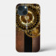 Antique, fantastic watches with gold and brass gears on a brown, rusty background. Steampunk style.