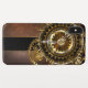 Antique, fantastic watches with gold and brass gears on a brown, rusty background. Steampunk style.