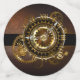 Antique, fantastic watches with gold and brass gears on a brown, rusty background. Steampunk style.
