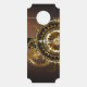 Antique, fantastic watches with gold and brass gears on a brown, rusty background. Steampunk style.