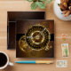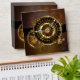 Antique, fantastic watches with gold and brass gears on a brown, rusty background. Steampunk style.