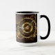 Antique, fantastic watches with gold and brass gears on a brown, rusty background. Steampunk style.