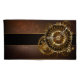 Antique, fantastic watches with gold and brass gears on a brown, rusty background. Steampunk style.