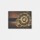 Antique, fantastic watches with gold and brass gears on a brown, rusty background. Steampunk style.