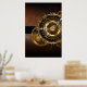 Antique, fantastic watches with gold and brass gears on a brown, rusty background. Steampunk style.