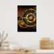 Antique, fantastic watches with gold and brass gears on a brown, rusty background. Steampunk style.