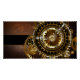 Antique, fantastic watches with gold and brass gears on a brown, rusty background. Steampunk style.