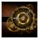 Antique, fantastic watches with gold and brass gears on a brown, rusty background. Steampunk style.
