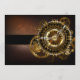 Antique, fantastic watches with gold and brass gears on a brown, rusty background. Steampunk style.