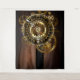 Antique, fantastic watches with gold and brass gears on a brown, rusty background. Steampunk style.