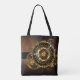 Antique, fantastic watches with gold and brass gears on a brown, rusty background. Steampunk style.