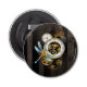 Antique dials with gold and brass gears, decorated with mechanical dragonfly on brown, striped background. Steampunk.