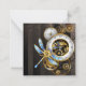 Antique dials with gold and brass gears, decorated with mechanical dragonfly on brown, striped background. Steampunk.