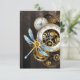 Antique dials with gold and brass gears, decorated with mechanical dragonfly on brown, striped background. Steampunk.