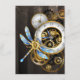 Steampunk Clock with Mechanical Dragonfly Enclosure Card