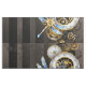 Antique dials with gold and brass gears, decorated with mechanical dragonfly on brown, striped background. Steampunk.