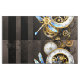 Antique dials with gold and brass gears, decorated with mechanical dragonfly on brown, striped background. Steampunk.