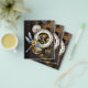 Antique dials with gold and brass gears, decorated with mechanical dragonfly on brown, striped background. Steampunk.