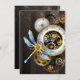 Steampunk Clock with Mechanical Dragonfly Holiday Card