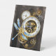 Steampunk Clock with Mechanical Dragonfly Pedestal Sign
