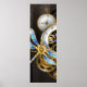 Antique dials with gold and brass gears, decorated with mechanical dragonfly on brown, striped background. Steampunk.
