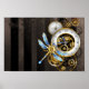 Steampunk Clock with Mechanical Dragonfly Poster